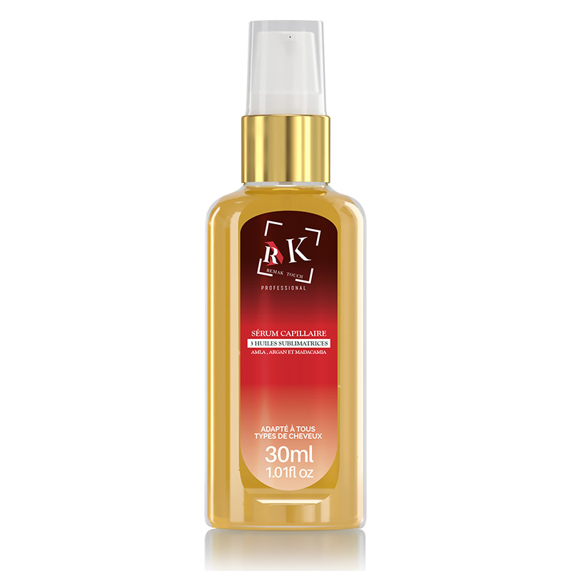 Sérum capillaire aux 3 huiles sublimatrices: Amla, Argan, Madacamia. Les huiles capillaires RMK apportent force, douceur et brillance aux cheveux. Elles peuvent également protéger vos longueurs contre les facteurs externes nocifs. La gamme RMK protège vos cheveux des dommages causés par les appareils chauffants.